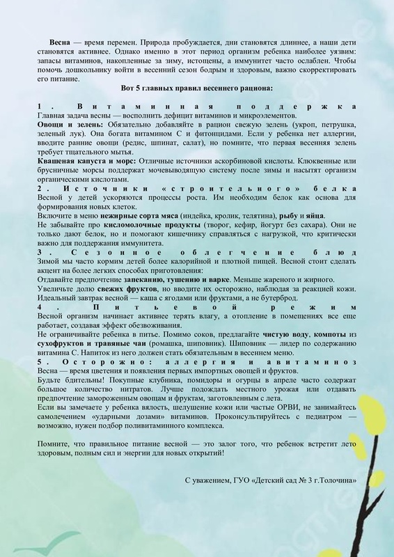 Особенности питания детей весной