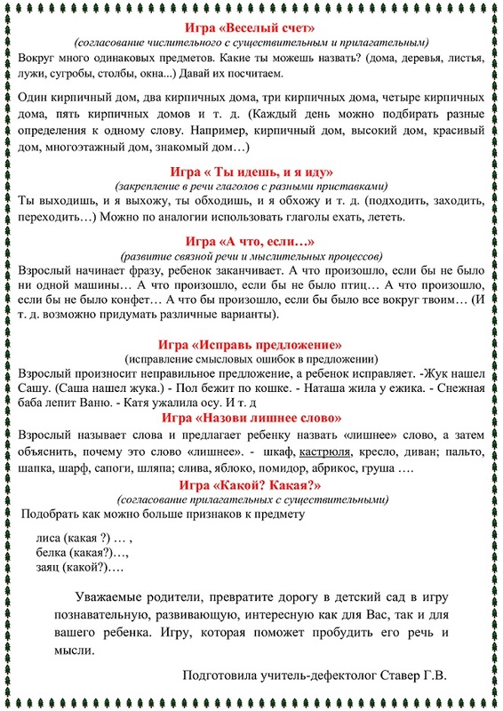 Речевые игры по дороге в детский сад